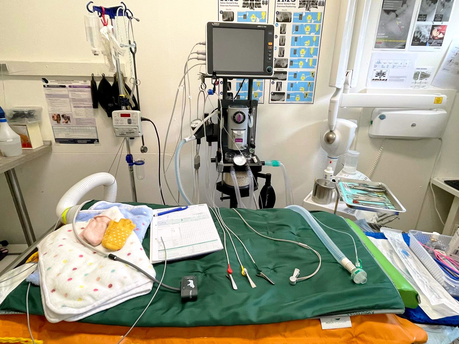 Die physiologische Thermoregulation wird durch die Anästhesie stark beeinträchtigt. Damit Ihr Liebling während der OP nicht auskühlt, wird er aktiv über ein Warmluftgebläse von uns gewärmt. Unabdingbar ist dabei die ständige Kontrolle der Körpertemperatur, um die Maßnahmen entsprechend anzupassen und sowohl eine Hypothermie (zu niedrige Temperatur) als auch eine Hyperthermie (zu hohe Temperatur) zu vermeiden.